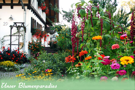 Unser Garten mit seiner kleinen Liegewiese und der gemütlichen Laube ist unser ganzer Stolz.