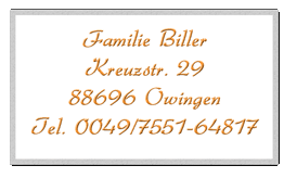 Familie Biller | Kreuzstr. 29 | 88696 Owingen | Tel.: 07551 / 64817 | E-Mail: info@haus-billy.de